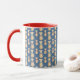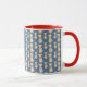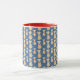 Eine bläuliche Tasse mit süß-gelben Hunden, die ihre eigene Bandana tragen. Ein perfektes Geschenk für einen Hundefreund.