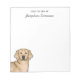 Desteis originelle Cartoon-Illustration einer gelben Farbe Golden Retriever züchten Hund Kopf nah-up. Das Hundeporträt wird in der links unteren Ecke platziert. Es gibt auch zwei personalisierbare Textbereiche oben, die jetzt lauten: "From the desk of" zusammen mit einem personalisierbaren Namen.