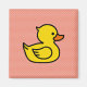 Eine gelbe Gummiente mit grünem rechteckigen Hintergrundmagneten. Idealer Kühlschrankmagnet, Küchenmagnet, Geschenkidee für die Hauswärmung. Kommt in anderen Farben.