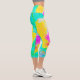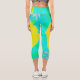 Gelber Mohn mit Hot-Pink-Mitte auf Türkis Capri Leggings