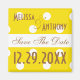 Gelbe und weiße Polka-Punkte sind das Thema dieses zeitgenössischen "Save the Date" Magneten. Der individuell gestaltbare Text enthält einen Platz für den Namen des glücklichen Paares und das Hochzeitsdatum.