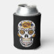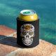 Gelber Rosenzucker-Schädel auf schwarz Dosenkühler