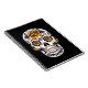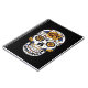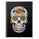 Gelber Rosenzucker-Schädel auf schwarz Notizblock