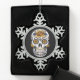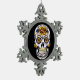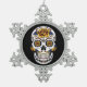 Gelber Rosenzucker-Schädel auf schwarz Schneeflocken Zinn-Ornament
