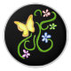 Ein hübscher, gelber Schmetterling mit Weinrebe und Frühlingsblumen auf diesem phantastischen Knob der Keramik. Der schwarze Hintergrund kann durch Anklicken des Buttons verändert werden.