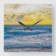 Gelber Sonnenuntergang über blauem Meer Quadratische Wanduhr