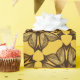 Gelbes Blume Packpapier mit einem abstrakten Kunstwerk aus einer Tinte gezeichnet Blütenelement. Dieses hübsche Blumenmuster mit sechseckigen Formen hat warme Gelb- und Dunkelbraun-Farben.