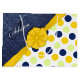 Elegantes Imitat Jeans Stoff und Punkte in blau und gelb Muster mit einem schönen Band in sonniger Gelbfarbe und einem Monogramm. Personalisieren Sie, indem Sie den Namen ändern oder klicken Sie auf Anpassen, um Ihre eigene Touch hinzuzufügen.