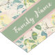 Passen Sie diesen eleganten gelben Budgerigar Tischläufer mit Ihrem Familiennamen an. Das hübsche Muster hat gelbe und grüne Blätter auf einem cremefarbenen Hintergrund mit Touchs von Rosa.