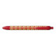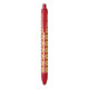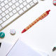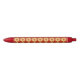 Cooler und trendiger Kunststoff-Stift, der ein Bild einer gelben Dahlia-Blume auf einem hellen, roten Hintergrund zeigt und in einem sich wiederholenden Muster gedruckt wird. Wählen Sie die Farbe der Stift und die Schnittfarbe aus.