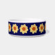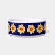 Keramik Haustierfutterschale für Ihre Katze oder Ihren Hund, die das Foto einer gelben Dahlia-Blume vor einem marineblauen Hintergrund zeigt und in einem sich wiederholenden Muster gedruckt wird. Ein schönes, blumengeschmücktes Design! Wählen Sie Ihre Schüssel Größe.