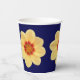 Mit diesen Papiertassen, die das Foto einer großen, gelben Dahlia-Blume auf marinebaublauem Hintergrund zeigen und in einem sich wiederholenden Muster rund um den Becher gedruckt sind, können Sie einem Party, Picknick oder einem anderen besonderen Ereignis Spaß machen. Ein schönes, blumengeschmücktes Design! Pokalschilder sind optional.
