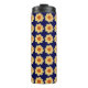 Behalt deine warmen Getränke und kalte Getränke mit diesem trendigen, thermischen Schuster, der ein Foto-Bild einer gelben Dahlia-Blume auf marinebaublauem Hintergrund umhüllt und in einem sich wiederholenden Muster gedruckt. Ein schönes, blumengeschmücktes Design!