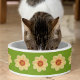 Keramik Haustierfutterschale für Ihre Katze oder Ihren Hund, die das Foto einer gelben Dahlia-Blume vor einem limig grünen Hintergrund zeigt und in einem sich wiederholenden Muster gedruckt. Ein schönes, blumengeschmücktes Design! Wählen Sie Ihre Schüssel Größe.