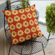 Gelbes Dahlia-Blumenmuster auf Rot Kissen