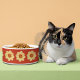 Keramik Haustierfutterschale für Katze oder Hund, die das Foto einer gelben Dahlia-Blume mit einem hellen, roten Hintergrund zeigt und in einem sich wiederholenden Muster gedruckt wird. Ein schönes, blumengeschmücktes Design! Wählen Sie Ihre Schüssel Größe.