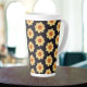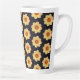 In dieser Keramik Tasse mit einer Kaffeetasse auskühlen, die ein umgehendes Foto-Bild einer gelben Dahlia-Blume auf einem schwarzen Hintergrund zeigt, der in einem sich wiederholenden Muster gedruckt ist. Ein schönes, blumengeschmücktes Design! Wählen Sie die aktuelle Tasse aus.