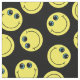 Die gelben emoji Gesichter auf diesem Gewebe haben blaue Augen. Entwurf hat einen schwarzen Hintergrund, der zu jeder möglicher Farbe besonders angefertigt werden kann, die, Sie wünschen.