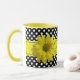 Gelbes Gänseblümchen-Schwarzweiss-Tupfen Tasse