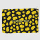 Gelbe Käsescheiben. Nahtloses Muster. Benutzerdefinierte Hintergrundfarbe. Eigener Text.