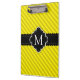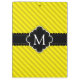 Schickes und elegantes gelbes diagonales Streifenmuster mit stilvollem schwarzem Fahnenrahmenentwurf in der Mitte für Ihre kundengebundene Monogramminitiale.