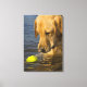 Gelbes Labrador mit einem Tennisball im Wasser Leinwanddruck