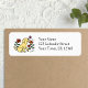 Gelbes Labrador und grünes Label für Labrador Fans! Farbenfrohe und niedliche Yellow Labrador Retriever Cartoon Design mit Blume. Adorable Yellow Labrador Welpe sitzend im Garten mit Blume und grünen Pflanze. Schönes Design für Frauen. Whimsy und lustige Labrador Retriever Hund Cartoon von Naomi Ochiai aus Japan erstellt.