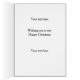 Lustige Weihnachtskarte mit einem gelben Labrador und einem Rebhuhn, die während der Weihnachtszeit offenbar einen Waffenstillstand geschlossen haben! Das Rebhuhn reitet auf dem gelben Labrador in einer schneebedeckten Szene mit funkelnden Weihnachtsbäumen im Hintergrund.