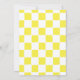 Eine lustige und helle Kindergeburtstag Party Einladung mit gelben, blauen und hellgrünen Lächeln Gesichtsbildern. Die Rückseite der Karte weist ein gelb-weiß kariertes Muster auf, das den Retrovibe Anzug.