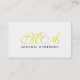 Gelbes Monogramm Elegantes Script Schlicht Weiß Visitenkarte