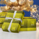 Gelbes ombre geometrisches Maschenmuster Monogram Geschenkpapier
