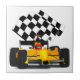 Gelbes Rennwagen mit Checkbox Fliese