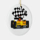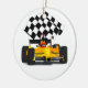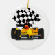 Gelbes Rennwagen mit Checkbox Ornament Aus Metall