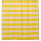 Der Duschvorhang ist in Gelb und Rosa gehalten und mit einem pastellfarbenen Streifen versehen. Ideal, um eine moderne rustikale Vintage Touch in die Frühlings- und Sommerbadezimmerdekoration zu integrieren.