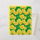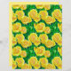 Papier in Aquarellfarben, in Tief- bis Buttergelb-Tönen, vor einem Hintergrund von grünen Blätter
