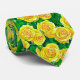 Krawatte in Aquarellfarben-Rose in Tief- bis Buttergelb-Tönen vor einem Hintergrund von grünen Blätter