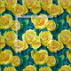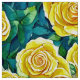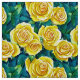 Stoffe in einem Aquarellmuster aus altmodischen, gelben Rosen mit grünem Blattwerk