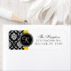 Schwarz-Weiß-Damaske mit gelblicher Akzent-Farbe mit personalisiertem Monogramm macht dies zu einem vielseitigen Hochzeitseinladungs-Rücksendesiegel. Passen Sie Ihre Monogramm-Initial-, Name- und Adressdaten an. Wählen Sie auch die Hintergrundfarbe und die Farbe des Monogramms. Copyright Elke Clarke und Lizenzgeber.