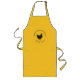Bauernhaus-Stil lange Schürze mit einem benutzerdefinierten Skript und einer Hühnerabbildungen auf einem lebendigen gelben Hintergrund.