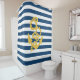 Duschvorhang zum Thema Segeln - gelber Anker mit Seil auf marineblau-blau-weiß gestreiftem Hintergrund - Badzubehör aus Ricaso
