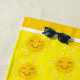 Ein gelbes Strandhandtuch mit glücklichen Sonnenschirmen für Strand oder Pool
