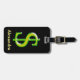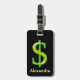 Dieser Gepäckumbau kennzeichnet ein großes gelbes und grünes Dollarzeichen ($), zusammen mit einem personalisierten Namen. Die Kontaktdetails über die Rückseite können personalisiert sein, auch.