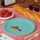 Gelbes und blaues Spielzeug mit Wasserblasen Pappteller