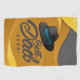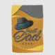 Ein gelbes und graues Handtuch mit Hut und bester Vater.