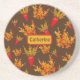 Gelbes und orangefarbenes Muster auf braunem Monog Getränkeuntersetzer