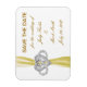 Diese schöne Rettung des Datums Magneten ist eine stilvolle, lang anhaltende Art, Ihren großen Tag zu verkünden. Personalisieren Sie den Magneten, indem Sie den Text in den angegebenen Feldern ändern. Sie können Stil, Größe und Farbe des Schriftartes ändern und die Hintergrundfarbe ändern.