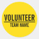 Gelbes Volunteer-Abzeichen mit Titel und Teamname in weißem, fett formatiertem Sans Serif-Schriftart auf gelbem Hintergrund. Auch perfekt für Praktikanten, Crew, Mitarbeiter, Gruppe, Team und vieles mehr.