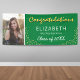 Feiern Sie stilvoll Abschluss mit unserem Personalisierten Graduation Party Banner! Das Banner verfügt über eine anpassbare Schulfarbenkulisse, ein glänzendes Foto des Absolventen mit einer glitzernden Schicht Glitzer. Mit dem Wort "Glückwünsche" in einem Schattenskript geschrieben, zusammen mit dem Namen des Absolventen, der Schule, und Klassenjahr, ist dieses Banner das perfekte Kernstück für jede Feier. Verändern Sie den Hintergrund von einem lebendigen Grün zu einer beliebigen Farbe, die zu Ihrem Thema passt, für eine wirklich personalisierte Touch!
