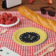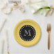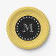 Gelbes Zickzack schwarzes Monogramm des Muster-| Pappteller