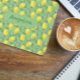 Klassisches und niedliches Design. Gelbe Aquarellfarben auf grünem Hintergrund. Mouse Pad in rustikalem Stil.